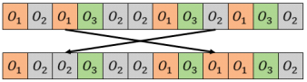 Fig. 1은 유전 알고리즘을 사용해서 Flexible Job Shop 스케줄링 문제를 풀기 위해 유전자와 염색체를 구성한 예시입니다. 쉽게 말해 각 주문(Order)을 처리하기 위해 n개의 작업(Job)이 주어져 있을 때, 작업을 수행하는 순서를 표현한 것입니다. 유전자의 $O_{n}$은 n번째 주문을 의미하고, 염색체 속 $O_{n}$의 개수는 각 주문을 처리하기 위한 작업의 숫자를 의미합니다. 즉, $O_{1}$은 염색체 내에 4개가 있음으로 첫 번째 주문을 처리하기 위해서는 4개의 작업이 필요하다는 의미로 염색체를 구성한 것입니다.