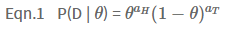 그렇지만 우리는 $\theta$ 값을 모르기에 이 수식을 지금 당장 활용할 수는 없습니다. 그렇기에 약간 관점을 바꾸어 보려고 합니다. $\theta$라는 값이 주어졌을 때, D라는 데이터가 관측될 확률은 Eqn.1 과 같이 정의됩니다. ($\because$ iid)
