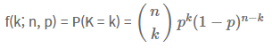 n과 p 값이 주어졌을 때, 앞면의 압정이 k개만큼 나올 확률은 다음과 같이 구할 수 있습니다.